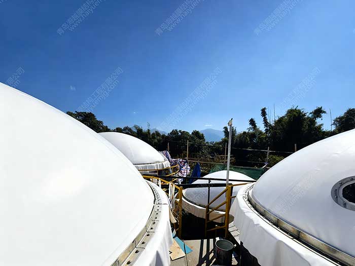 在云南芒市养殖场污水处理项目中,青岛海越膜结构工程有限公司以4套一体化双膜气柜(2套6m³+2套20m³)为核心,打造了一套高效、安全的沼气存储系统。这一方案不仅解决了养殖场污水处理的能源回收难题,更以卓越的性价比、紧凑的占地面积和全流程定制服务,成为养殖场绿色转型的“加速器”。青岛海越凭借丰富的项目经验、自主设计生产能力及国际认证背书,正引领养殖场沼气存储技术迈向新高度。