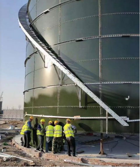海越搪瓷钢板是在工厂采用标准化方法生产和加工的。钢板经包装后运往施工现场进行组装,并使用螺栓将钢板连接起来。我们开发了专用的安装工具,使安装过程简单明了。安装受天气条件的影响很小,安装时间也很容易控制。